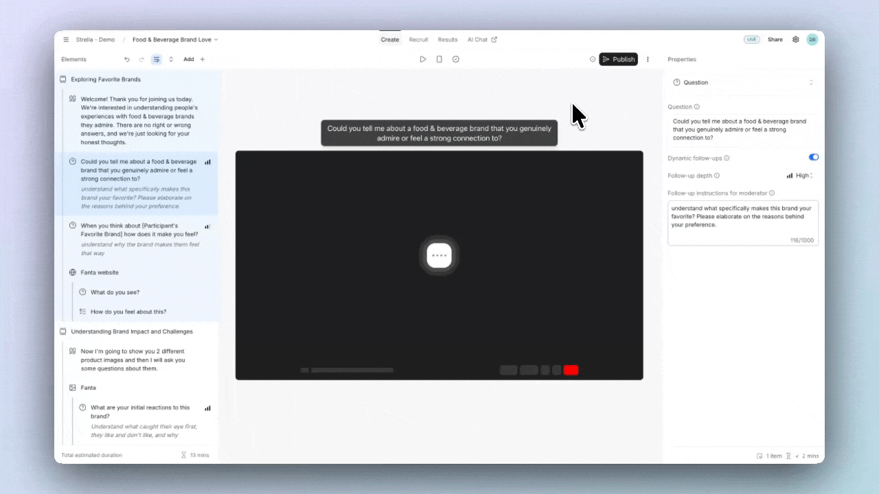 The question guide side panel now shows which questions have dynamic follow-ups — including their level and the follow-up prompt.